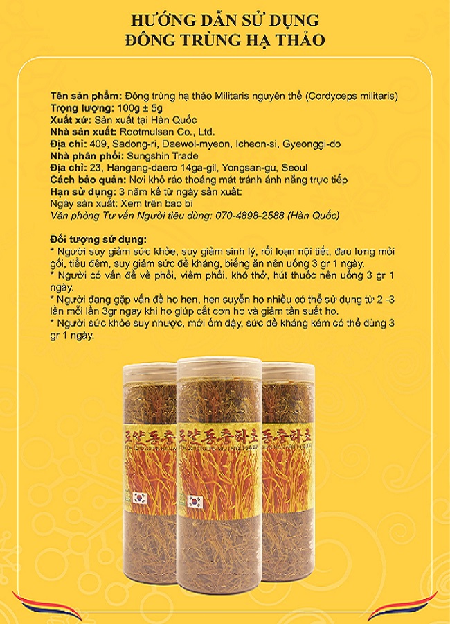 ⭐️ Bông Đông Trùng Hạ Thảo Đỏ Hàn Quốc Sấy Khô Hũ 100g là một sản phẩm cao cấp của Tập Đoàn Rootmulsan Co., Ltd. Sản phẩm được nuôi trồng và chế biến dựa trên 1 dây chuyền công nghệ hiện đại, dưới sự kiểm tra và giám sat chặt chẽ của các chuyên gia về Đông trùng hạ thảo của Hàn Quốc.