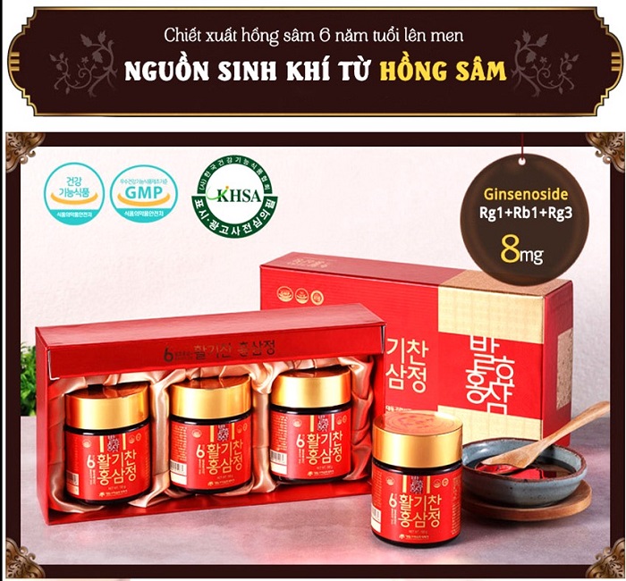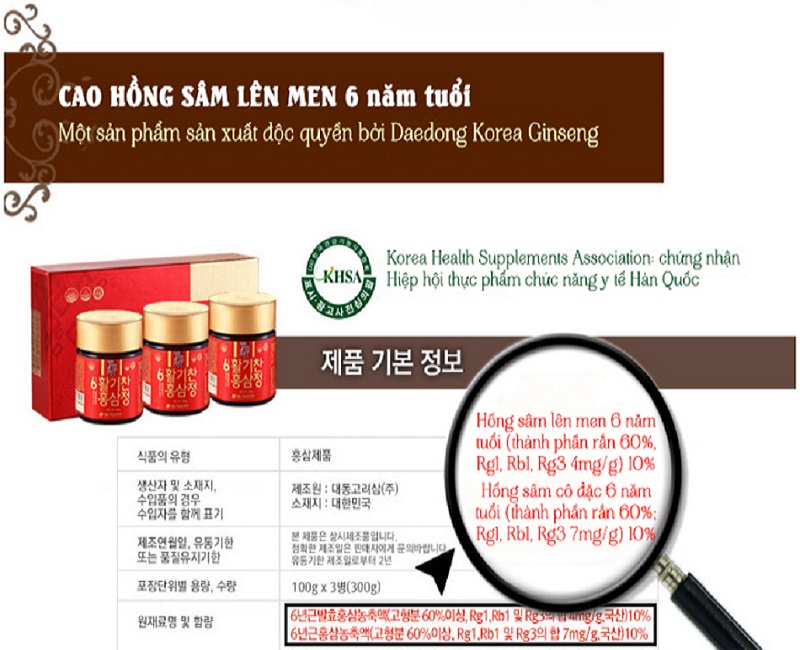 ✅ Nguyên liệu chính và chủ yếu là những củ nhân sâm đủ 6 năm tuổi, được tuyển chọn kỹ lưỡng. Sau đó, đem đi hấp sấy bằng đá Elvan phơi sấy tự nhiên dưới ánh nắng mặt trời trong vòng 8 tháng để tạo thành hồng sâm. Sau đó, hồng sâm được đem đi cô đặc theo công nghệ Fusion để tạo thành cao hồng sâm, rồi tiến hành quá trình lên men để tạo thành cao hồng sâm lên men cao cấp. Từng công đoạn đều đảm bảo chất lượng cho sản phẩm và đạt chuẩn vệ sinh an toàn thực phẩm của Hàn Quốc.