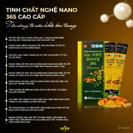 Nước Tinh Chất Nghệ Nano Cao Cấp 365 Curcumin Premium Hộp 30 Sticks x 20ml