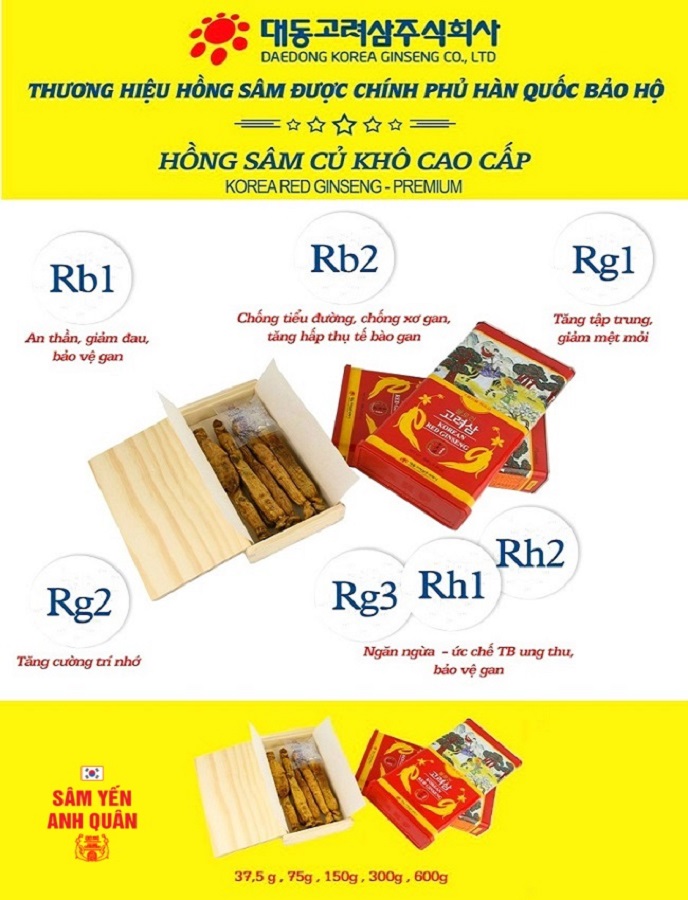 (*Saponin là thành phần hoạt chất đặc biệt chỉ có trong Nhân sâm Hàn Quốc).
