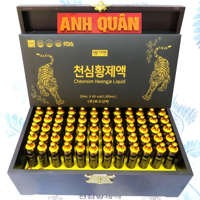 ✅ Nước Chiết Xuất Hồng Sâm Đông Trùng Hạ Thảo Cheonsim Hwangje Liquid Hộp Gỗ 60 Ống x 20ml là hỗn hợp lỏng, được chiết xuất từ 2 nguồn nguyên liệu chính là nhân sâm Hàn Quốc và đông trùng hạ thảo, có bổ sung thêm một số loại thảo dược quý hiếm khác, rất tốt cho sức khỏe người sử dụng. Sản phẩm được đóng gói dạng ống thủy tinh hợp vệ sinh và được sản xuất trên dây chuyền hiện đại, đảm bảo tiêu chuẩn an toàn thực phẩm.