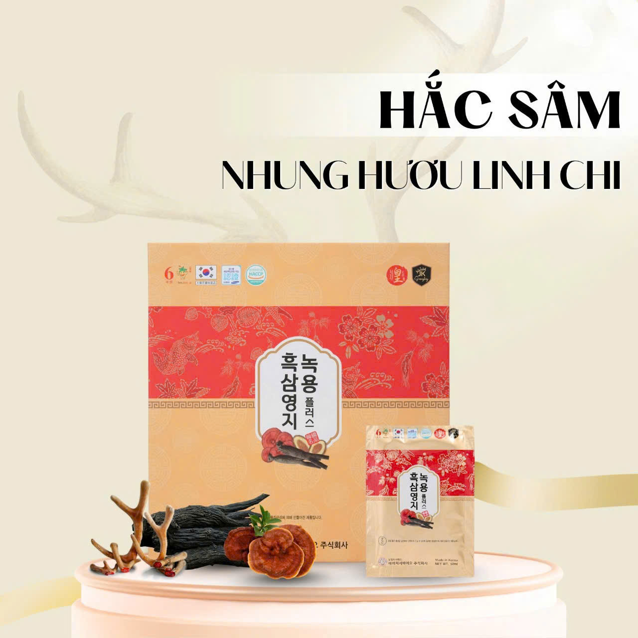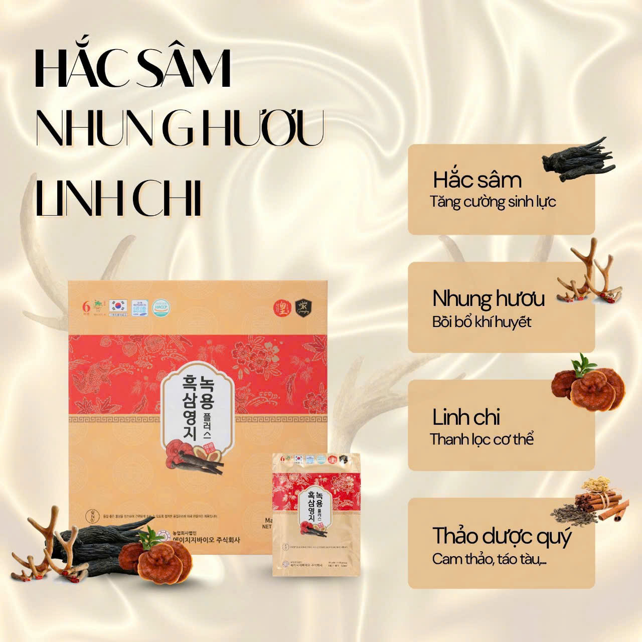 ✅ Nước Chiết Xuất Hắc Sâm Linh Chi Nhung Hươu HG Bio Hộp 30 Gói x 50ml là sản phẩm được chiết xuất từ 3 nguồn nguyên liệu chính là hắc sâm Hàn Quốc thượng hạng, nấm linh chi chất lượng cao và nhung hươu New Zealand, lại được bổ sung thêm hồng sâm và một số thành phần thảo dược khác nên mang lại nhiều công dụng rất tốt đối với sức khỏe của người sử dụng. Các thành phần nguyên liệu của sản phẩm đã được chuyên gia cân đo tỉ mỉ với liều lượng phù hợp và tất cả được đưa qua một chu trình chiết xuất khép kín nhằm phát huy tối đa công dụng của hắc sâm, nấm linh chi và nhung hươu. Đây cũng là một trong các sản phẩm chiến lược của Nhà sản xuất HG Bio Co., Ltd., đã và đang được tiêu thụ tại nhiều quốc gia như: Hàn Quốc, Trung Quốc, Mỹ, Anh, Đài Loan, Việt Nam…