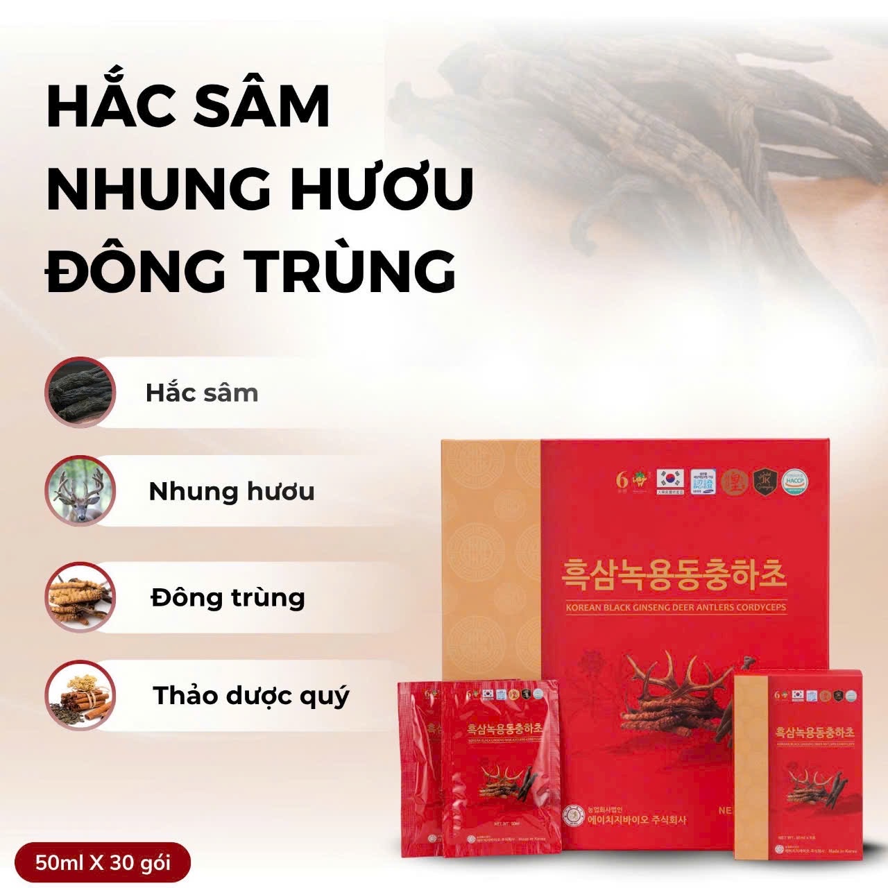 Nước Chiết Xuất Hắc Sâm Nhung Hươu Đông Trùng Hạ Thảo HG Bio Hộp 30 Gói x 50ml