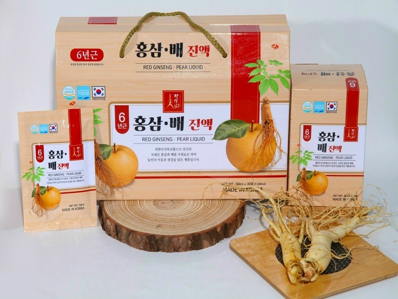 ⭐️ Nước Chiết Xuất Hồng Sâm Lê Hộp 30 Gói x 50ml (Red Ginseng Pear Liquid) là một loại nước uống giàu dinh dưỡng, được chiết xuất từ hồng sâm 6 năm tuổi kết hợp cùng với nước ép trái lê tươi ngon, thanh mát. Sản phẩm được dùng để bồi bổ sức khỏe, tăng cường thể chất, cung cấp vitamin làm đẹp da, hỗ trợ làm chậm lão hóa các bộ phận trên cơ thể người sử dụng.