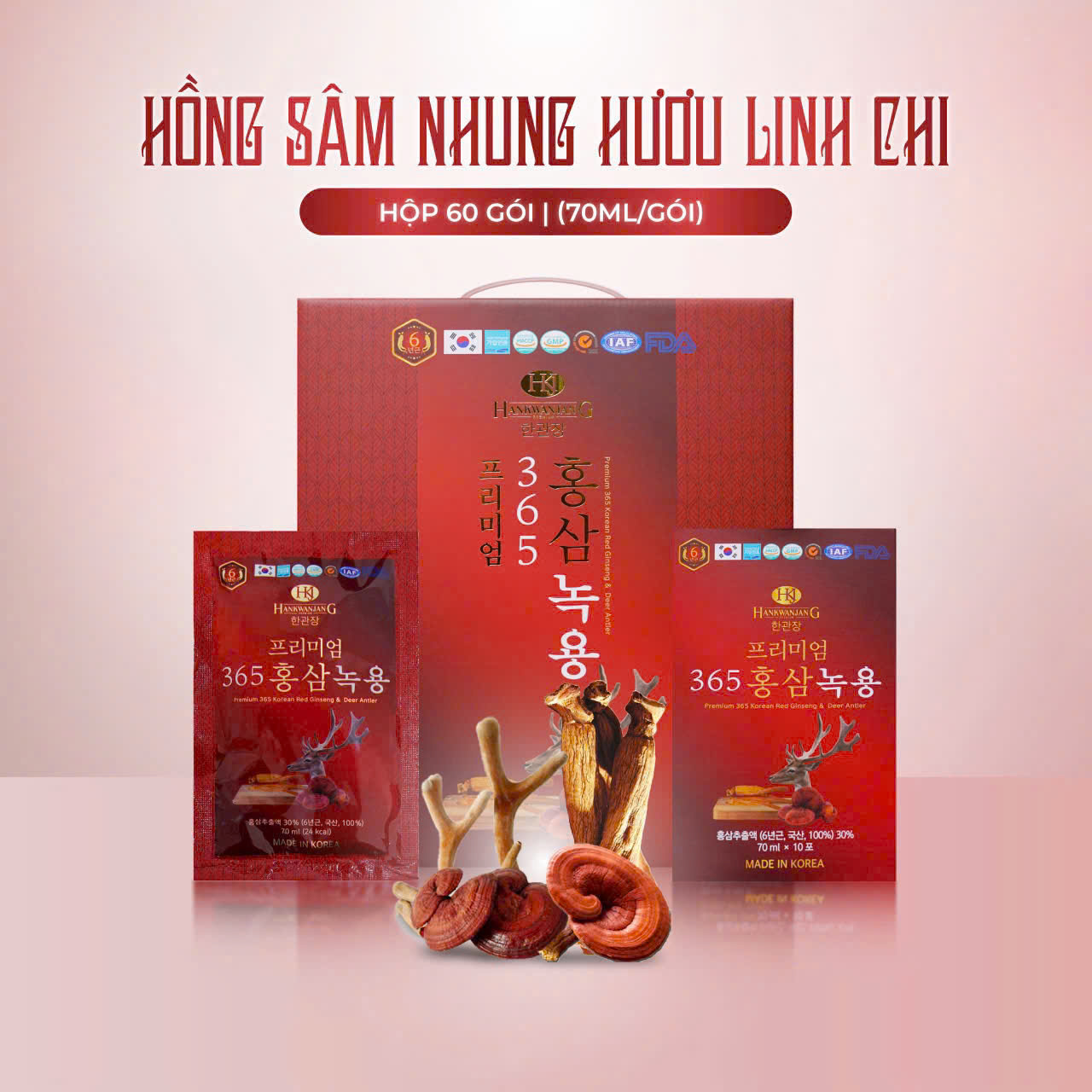 Nước Chiết Xuất Hồng Sâm Nhung Hươu Linh Chi 365 Hàn Quốc Hộp 60 Gói x 70ml