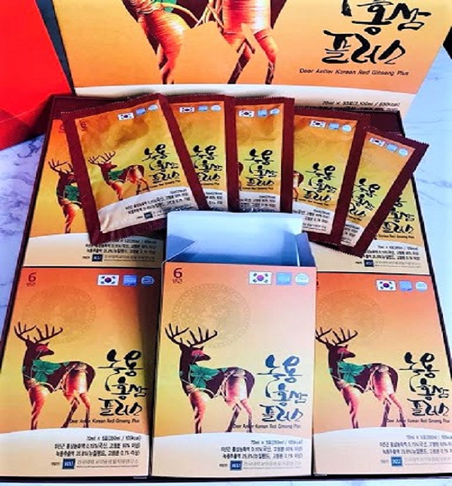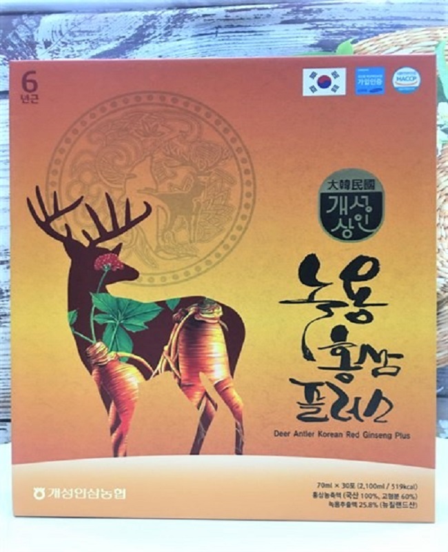 ⭐️ Nước Chiết Xuất Hồng Sâm Nhung Hươu Plus Hộp 30 Gói x 70ml là sản phẩm nổi tiếng của Hàn Quốc, được bào chế từ nhung hươu và nhân sâm 6 năm tuổi, giúp bồi bổ sức khỏe, hỗ trợ điều trị một số bệnh thông thường. Nguyên liệu chính là các củ nhân sâm đủ 6 năm tuổi và nhung hươu New Zealand loại thượng hạng, được tuyển chọn, nghiên cứu kết hợp và sản xuất bởi đội ngũ chuyên gia hàng đầu của Công ty Kaesong Merchant Co., Ltd. Sản phẩm rất được ưa chuộng tại Hàn Quốc và Việt Nam.