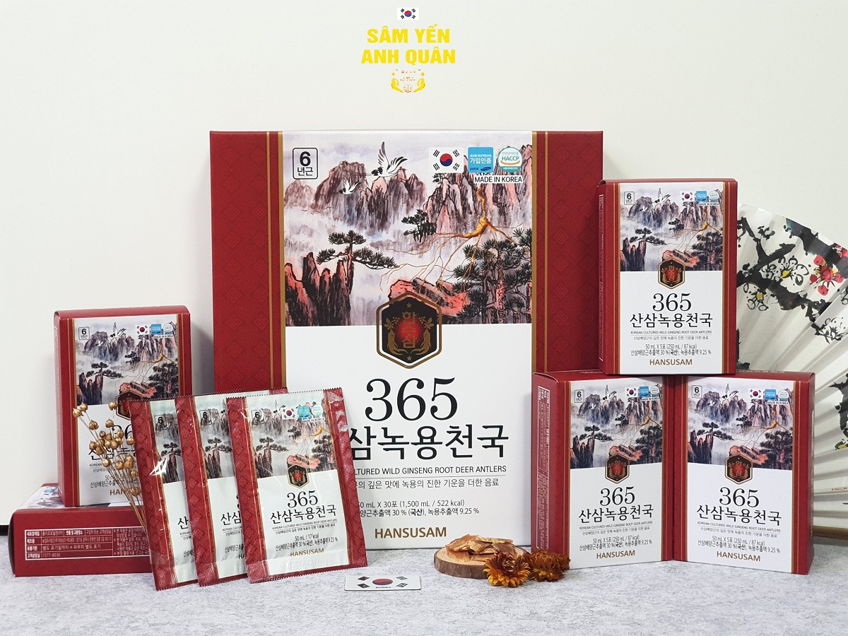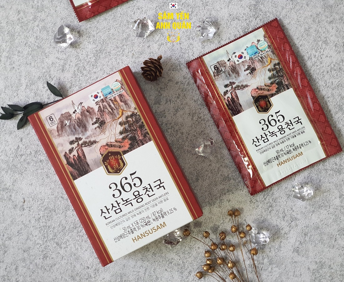 Nước Chiết Xuất Nhung Hươu Hồng Sâm Núi 365 Hộp 30 Gói x 50ml