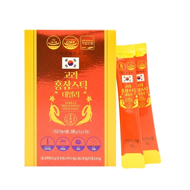 ⭐ Nước Hồng Sâm Cao Cấp Daedong Stick Daily Hộp 60 Sticks x 10g chứa thành phần chính là Hồng sâm Hàn Quốc 6 năm tuổi cô đặc, được chiết xuất từ những củ nhân sâm chất lượng nhất, đã được tuyển chọn kỹ lưỡng, với hàm lượng dưỡng chất vượt trội hơn hẳn trong các loại Nhân sâm của Hàn Quốc, kết hợp với 13 loại thảo dược bổ dưỡng quý hiếm, 8 loại vitamin, 6 loại khoáng chất khác.