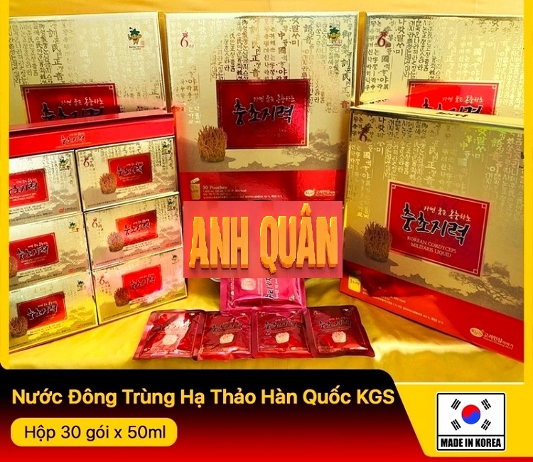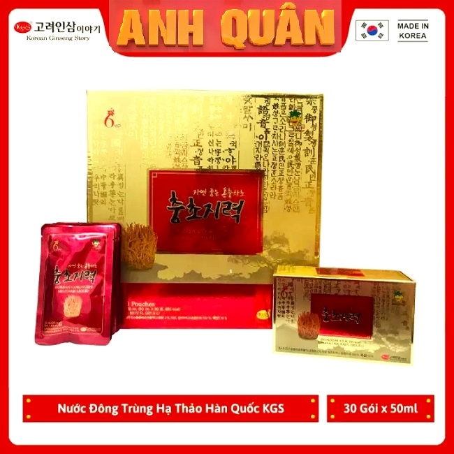 ⭐ Nước Tinh Chất Đông Trùng Hạ Thảo KGS Hộp 30 Gói x 50ml là sản phẩm cao cấp được chiết xuất từ Đông Trùng Hạ Thảo Hàn Quốc nguyên chất. Sản phẩm dạng nước uống, nhanh hấp thụ, dễ sử dụng, giúp bồi bổ cơ thể, tăng cường sinh lực cho nam giới có vấn đề về sinh lý, là loại chế phẩm có dược tính dành cho cả phái nam và phái nữ, với các công dụng như: Bồi bổ sinh lực, cải thiện chức năng sinh lý, tăng cường chức năng gan, thận, phòng chống ung thư. Ngoài ra, sử dụng sản phẩm đều đặn và đúng cách còn giúp ổn định huyết áp, tim mạch, giúp ích tinh và tăng cường sinh lý, giúp cho hệ thống tiêu hóa hoạt động tốt hơn để cơ thể dễ dàng hấp thụ các dưỡng chất trong quá trình ăn uống, giúp ăn ngon, ngủ ngon hơn.