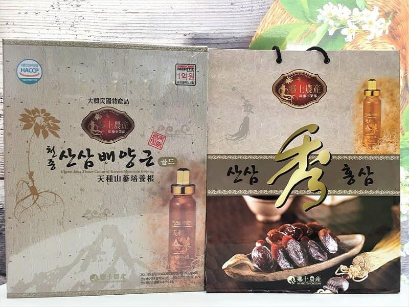 ✅ Thành phần nguyên liệu sản phẩm: Chiết xuất tinh chất củ nhân sâm núi hoang dã (hàng nội địa Hàn Quốc, hàm lượng rắn trên 0.01%) chiếm 85.07%, chiết xuất tinh chất rễ nhân sâm núi được nuôi trồng trong môi trường tự nhiên (hàng nội địa Hàn Quốc) chiếm 3.5%, chiết xuất tinh chất rễ nhân sâm núi hoang dã chiếm 10%, chiết xuất cây Bongmil, đường oligosaccharide, đường fructose lỏng, chiết xuất nấm Thượng Hoàng (nội địa, hàm lượng rắn 40%) chiếm 0.25%, chiết xuất nấm Linh Chi (nội địa, hàm lượng rắn 65%) chiếm 0.25%, Vitamin C 0.05%, hương thảo mộc 0.3%, axit citric 0.03%, tinh dầu hạt bưởi 0.05%, nước tinh khiết 0.5%.