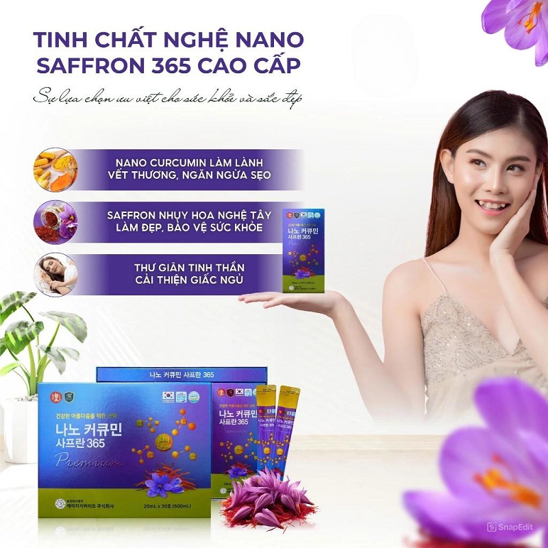 Nước Tinh Chất Nghệ Saffron 365 Nano Curcumin Nhụy Hoa Nghệ Tây Hộp 30 Sticks x 20ml