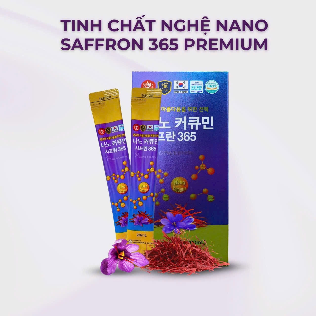 Nước Tinh Chất Nghệ Saffron 365 Nano Curcumin Nhụy Hoa Nghệ Tây Hộp 30 Sticks x 20ml