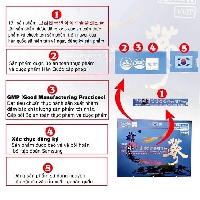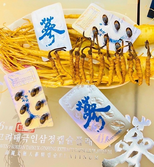 Thành phần nguyên liệu sản phẩm: Chiết xuất Nhân sâm cô đặc (6 năm tuổi, hàm lượng ginsenoside Rg1, Rb1 đạt tổng cộng 8mg/g, hàm lượng chất rắn đạt 60% trở lên, sản xuất trong nước) [Tỷ lệ pha trộn nhân sâm thô: Rễ hồng sâm 70%, hồng sâm 30%] 28%, dầu đậu nành [sản xuất nước ngoài (Argentina, Mỹ, Việt Nam) v.v.)], dầu cọ (trong nước), Chiết xuất Đông trùng hạ thảo cô đặc (Cordyceps Sinensis, trong nước), sáp ong, Nấm Linh chi cô đặc (trong nước), canxi lactate, kali clorua, taurine, vitamin B1 hydrochloride.
